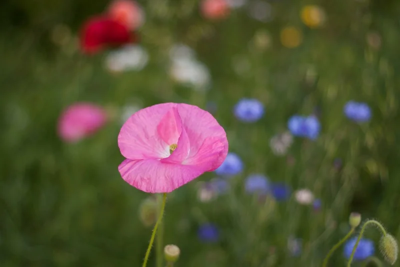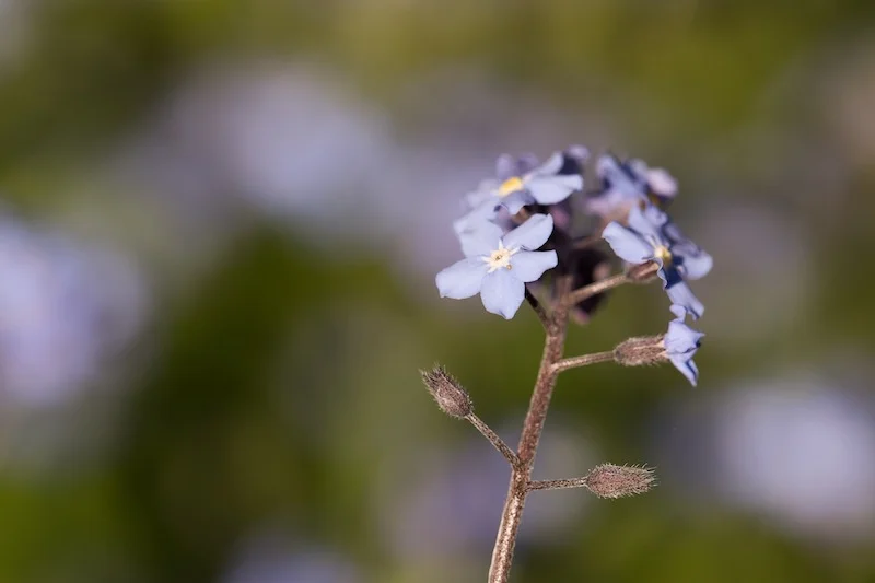 Whether the background is blurred is not, think carefully about how it will have an impact on your image. The contrast of a pink flower on a green background or a blue cornflower in a golden barley field can look tremendous. You might not, however, want different coloured flowers creeping into the scene. And have you thought about isolating a few lavender buds against a purple haze?